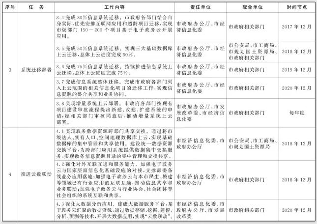 2017年6月前,完成市政府網(wǎng)上政務(wù)大廳、政府網(wǎng)站群、公共信用信息服務(wù)平臺的遷移。