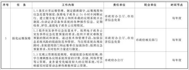 2017年2月前,完成電子政務(wù)云運營和管理、電子政務(wù)云應(yīng)用建設(shè)、遷移和部署以及云安全體系建設(shè)等標準和規(guī)范的制定,完成突發(fā)事件應(yīng)急處置預(yù)案編制。