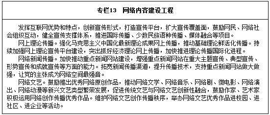 加強(qiáng)網(wǎng)絡(luò)文化陣地建設(shè)。加快國家骨干新聞媒體的網(wǎng)絡(luò)化建設(shè),做大做強(qiáng)中央主要新聞網(wǎng)站和地方重點(diǎn)新聞網(wǎng)站,培育具有國際影響力的現(xiàn)代傳媒集團(tuán)。推動多元網(wǎng)絡(luò)文化產(chǎn)業(yè)發(fā)展與整合,培育一批創(chuàng)新能力強(qiáng)、專業(yè)素質(zhì)高、具有國際影響力的網(wǎng)絡(luò)文化龍頭企業(yè),增強(qiáng)優(yōu)秀網(wǎng)絡(luò)文化產(chǎn)品創(chuàng)新和供給能力。