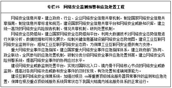 強(qiáng)化網(wǎng)絡(luò)安全頂層設(shè)計。制定實(shí)施國家網(wǎng)絡(luò)空間安全戰(zhàn)略。完善網(wǎng)絡(luò)安全法律法規(guī)體系,推動出臺網(wǎng)絡(luò)安全法、密碼法、個人信息保護(hù)法,研究制定未成年人網(wǎng)絡(luò)保護(hù)條例。建立完善國家網(wǎng)絡(luò)安全相關(guān)制度,健全完善國家網(wǎng)絡(luò)與信息安全信息通報預(yù)警機(jī)制,健全網(wǎng)絡(luò)安全標(biāo)準(zhǔn)體系。加強(qiáng)網(wǎng)絡(luò)空間安全學(xué)科專業(yè)建設(shè),創(chuàng)建一流網(wǎng)絡(luò)安全學(xué)院。