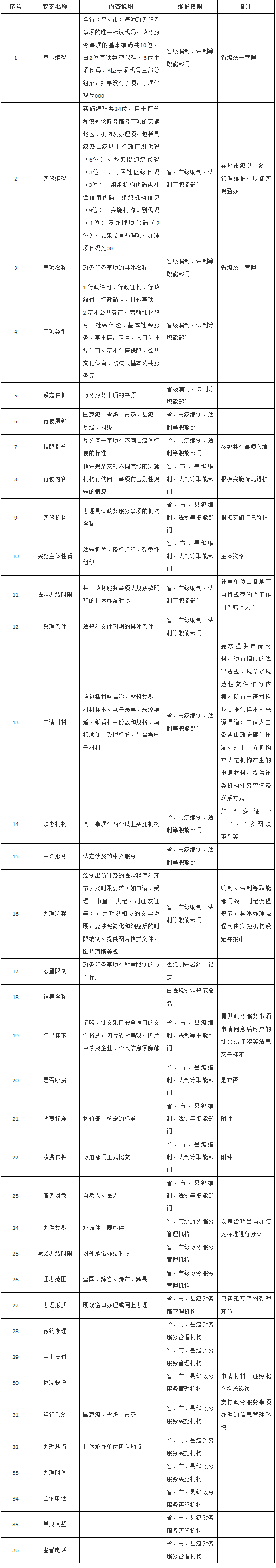 政務(wù)服務(wù)事項(xiàng)實(shí)施清單要素