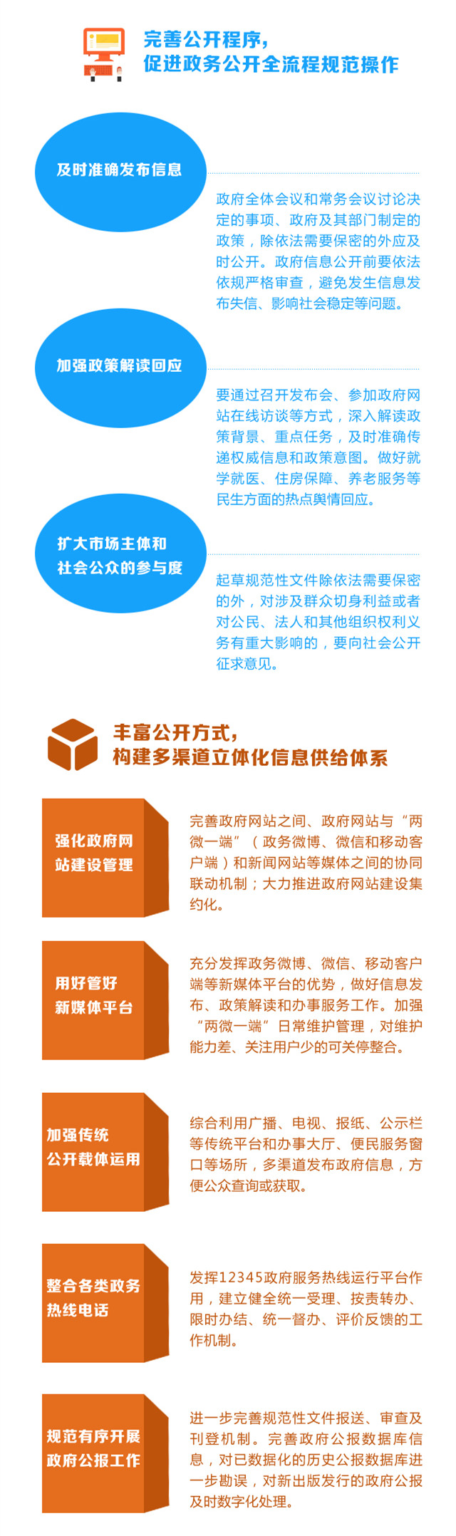 此外,隨著公眾在接收信息的形式手段日益多元化,《工作要點(diǎn)》也指出,要構(gòu)建多渠道立體化信息供給體系,要通過(guò)網(wǎng)站、新媒體平臺(tái)、傳統(tǒng)公開(kāi)載體、政務(wù)熱線、公報(bào)形式等多種形態(tài)來(lái)傳遞政務(wù)信息,做好政務(wù)公開(kāi)工作。