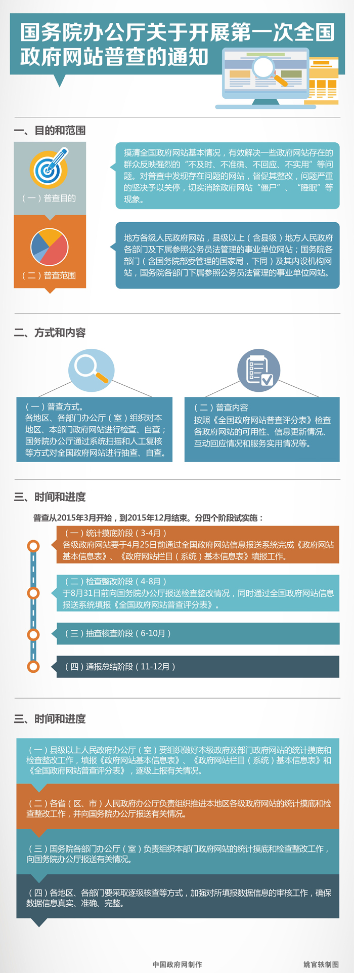 圖解:國(guó)辦關(guān)于開(kāi)展全國(guó)政府網(wǎng)站普查的通知 2015-03-24 16:03 來(lái)源: 新聞晨報(bào) 查看: 次 分享11 0 標(biāo)簽 政府網(wǎng)站普查 責(zé)任編輯:admin