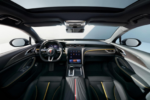 外觀驚艷,內(nèi)飾也相得益彰。紅旗H6內(nèi)飾采用以駕駛者為中心的紅旗經(jīng)典環(huán)抱式架構(gòu),融入優(yōu)雅、科技、運(yùn)動(dòng)三元素。金盞黃加黑色配色內(nèi)飾、激進(jìn)運(yùn)動(dòng)的桶式座椅,質(zhì)感豐富、細(xì)膩精湛,兼具高顏值和舒適感。