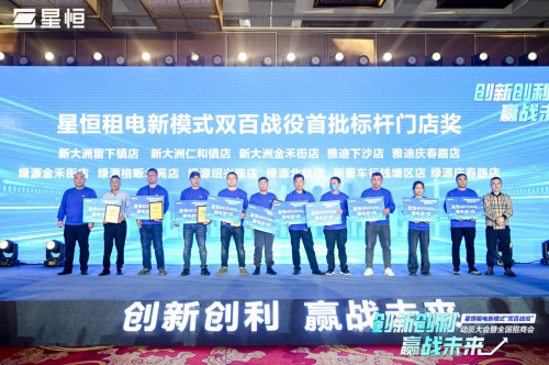 杭州市場的成功推廣,起到了標桿作用,也打響了星恒租電模式成功的第 一槍,會議現(xiàn)場星恒電源董事長兼總裁馮笑親自授予黃向明“雙百戰(zhàn)役先鋒獎”。為了表彰在推行租電模式中表現(xiàn)優(yōu)異的門店,號召更多的合作伙伴以此為表率,去獲得更高的增長,現(xiàn)場頒發(fā)了“雙百戰(zhàn)役首批標桿門店獎”,激發(fā)城市運營商和門店勇于創(chuàng)業(yè)、搶抓先機的決心與雄心。