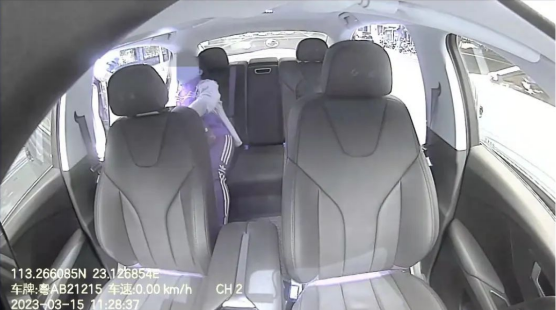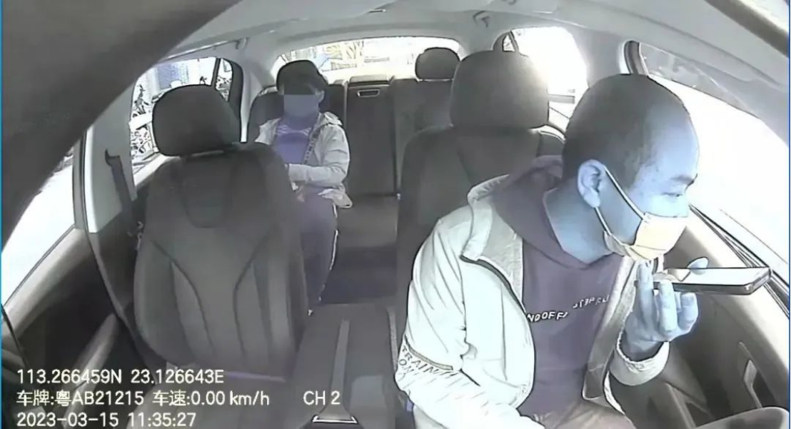 正在駕駛車輛行進的黃師傅在聽到后座聲響后,趕緊通過車內(nèi)后視鏡查看情況,看到乘客的癥狀后,他意識到需要盡快停車處理。