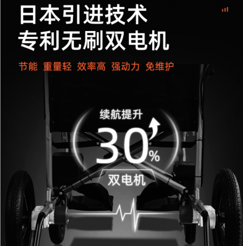 該款電動鈴輪椅經(jīng)過全新優(yōu)化的車架和新的電池控制器材料的使用,尤其是日本超輕電機(jī)技術(shù)的使用,大大降低了整臺輪椅的重量。同時保證了輪椅應(yīng)有的車身強(qiáng)度。