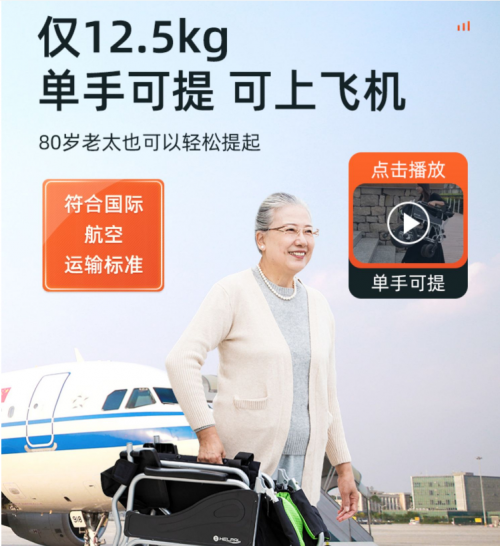 為了適應(yīng)電動輪椅輕型化和外出旅行的需要?;グ罟驹?023年底推出超輕電動輪椅,僅重12.5公斤。