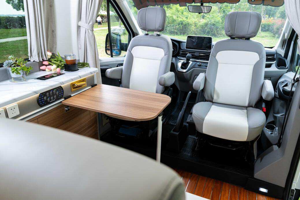 上汽大通MAXUS V90露營版的主副駕座椅為360度可旋轉(zhuǎn)座椅,能夠與乘客區(qū)的多功能桌板形成移動的桌游館,享受游戲的快樂。用上汽大通MAXUS V90露營版自帶的抽屜式電磁爐和配套精致茶具及清水/灰水箱,則可以煮上一杯香濃的紅茶,在多功能桌板上品茶?;蛘咭部梢韵萝?,利用上汽大通MAXUS V90露營版的反向充電功能,做一些簡單的美食,再打開伸縮式遮陽蓬,在棚下一邊吃一邊眺望遠(yuǎn)方的山林。