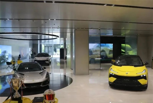 來到蘇州中心一樓的這家路特斯體驗(yàn)店,最先吸引我的不是店內(nèi)的展車,而是入口處頗為醒目的兩個(gè)黃色汽油桶,桶頂放置了一座冠軍獎(jiǎng)杯和一個(gè)賽車頭盔,似乎在訴說著路特斯的光輝歷史。事實(shí)上,路特斯也確實(shí)是賽道上的王者,曾經(jīng)收獲7次F1車隊(duì)總冠軍、6次F1車手總冠軍、81次F1分站冠軍,在內(nèi)燃機(jī)時(shí)代留下了濃墨重彩的一筆。