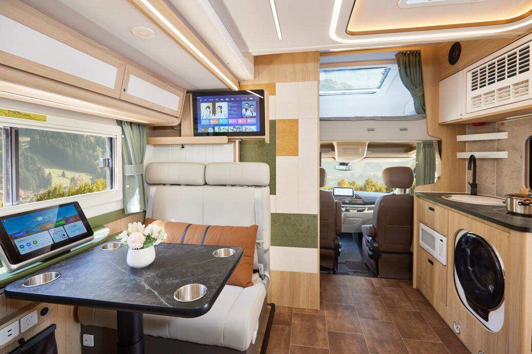 當(dāng)然,對于追求高品質(zhì)生活的消費人群而言,出行的舒適性也是非常重要的,而這主要得看房車是否擁有齊全的生活配置。