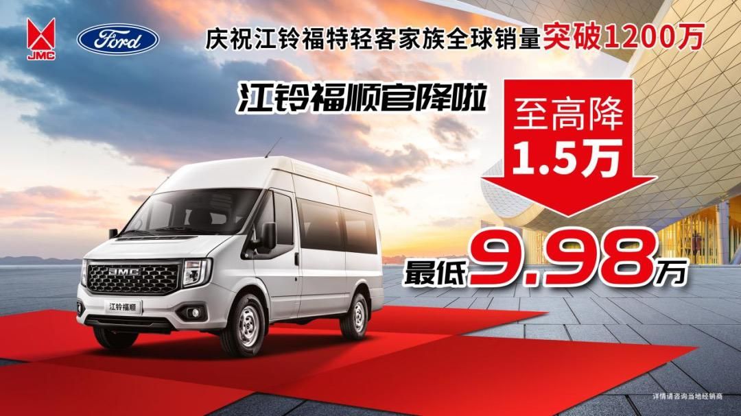 江鈴福特輕客是國內知名的輕客品牌,自成立以來,一直以優(yōu)異的品質和服務贏得了廣大用戶的信賴和支持。近日,江鈴福特輕客在全球市場的銷量突破了1200萬輛,締造了中國輕客品牌新的巔峰。而這一輝煌的背后,離不開每一位用戶的信賴和選擇。為了感謝大家對江鈴輕客的長期支持,江鈴福順特別推出了官方降價讓利活動,讓用戶能夠以超高性價比,入手超高價值的輕客產品。相信大家對降價政策已經十分期待了,下面,為各位介紹江鈴福順準備的三重禮遇: