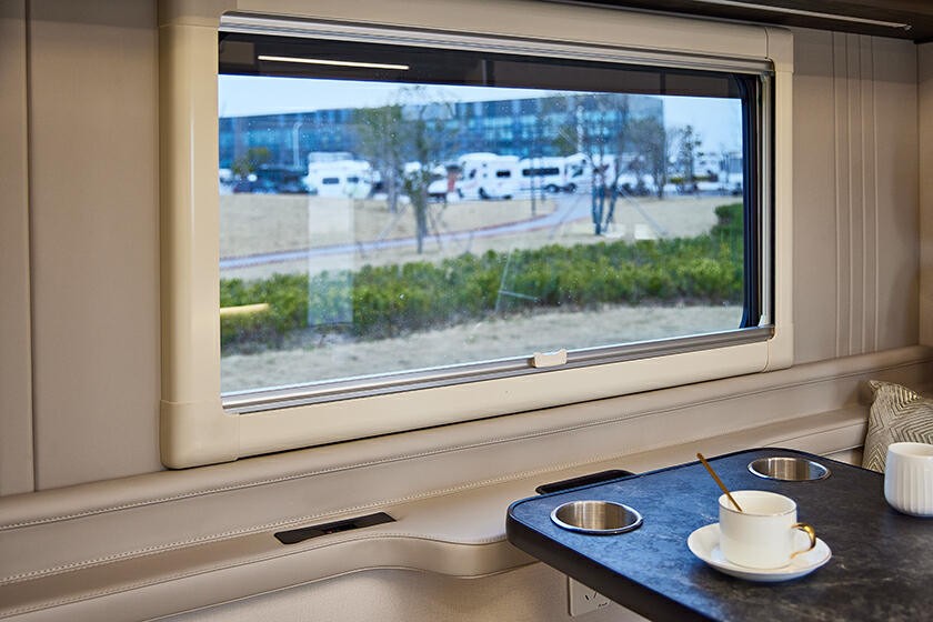 先來看宇通C530,在這些方面的表現(xiàn)比較中規(guī)中矩,無太多亮點(diǎn)。其使用了依維柯歐勝底盤,品質(zhì)有保障,但因?yàn)椴⒎窃瓘S設(shè)計(jì)的,與房車的適配性有待考量。