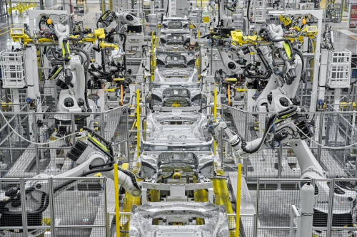 最 高行業(yè)制造難度(多種工藝實現(xiàn)首次全球量產(chǎn)化);安全性與輕量化的最 佳平衡(全車身鋼鋁比例為1:1);最 高行業(yè)強度標(biāo)準(zhǔn)熱成型鋼(1500MPa);最為先進的生產(chǎn)柔性(4 1多車型共線生產(chǎn));