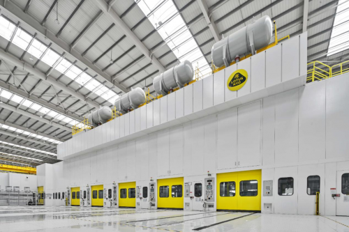 沖壓車間采用全球先進(jìn)的五序全自動(dòng)伺服沖壓設(shè)備,可實(shí)現(xiàn)更為復(fù)雜造型沖壓件的制造,零件成型更充分,從根本上保證了零件的尺寸精度和車身造型線條的一致性,滿足路特斯對(duì)于極致空氣動(dòng)力學(xué)復(fù)雜設(shè)計(jì)的制造需求。全自動(dòng)沖壓線的首臺(tái)壓機(jī),擁有高達(dá)2500噸的沖壓壓力,達(dá)到目前行業(yè)最 大壓力水平,讓復(fù)雜造型也能充分塑型,讓每一個(gè)風(fēng)道,都極致精細(xì)。