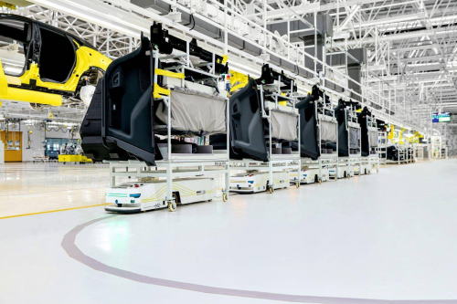 在總裝車間,配備大量高度自動(dòng)化和智能化設(shè)備,人機(jī)協(xié)作締造高質(zhì)量產(chǎn)品,保證Eletre出廠前的品質(zhì)一致性。自動(dòng)搬運(yùn)機(jī)器人AGV的運(yùn)用,極大提高分揀速度和準(zhǔn)確性,降低因人工操作導(dǎo)致的誤差;玻璃自動(dòng)涂膠設(shè)備,3D膠型檢測、機(jī)器人自動(dòng)涂膠、3D視覺引導(dǎo)裝配等設(shè)備,將智能制造融入每一個(gè)環(huán)節(jié),裝配后零部件貼合度和細(xì)節(jié)處理更好。