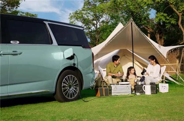 值得一提的是,大家MIFA9支持雙向充放電,除了直流快充+交流慢充,還自帶V2L外放電功能(6.6kW),即便你攜家人在戶外露營,亦可用電無憂。舉個例子,你可以用它給烤箱、咖啡機等供電,為全家出游增添更多樂趣。