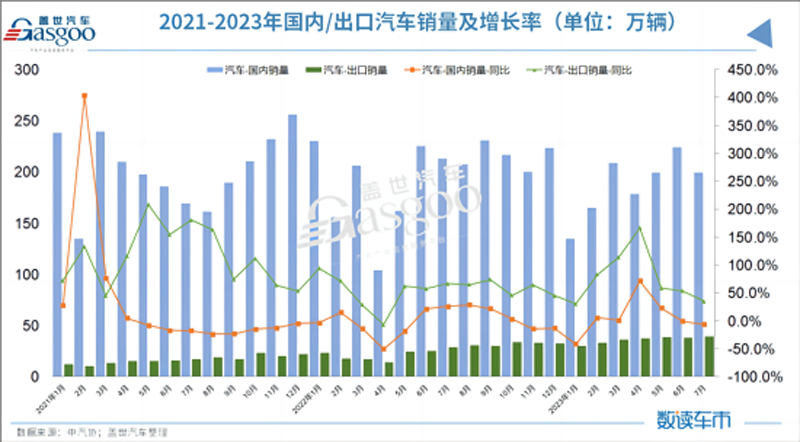 根據(jù)“中汽協(xié)”數(shù)據(jù),2023年7月,中國汽車出口39.2萬輛,出口規(guī)模再創(chuàng)歷史新高;前7個(gè)月,中國汽車?yán)塾?jì)出口253.3萬輛,同比增長67.9%。其中,傳統(tǒng)燃油汽車出口量為189.7萬輛,同比增長51.5%;新能源汽車出口63.6萬輛,同比增長1.5倍,出口增勢(shì)強(qiáng)勁。