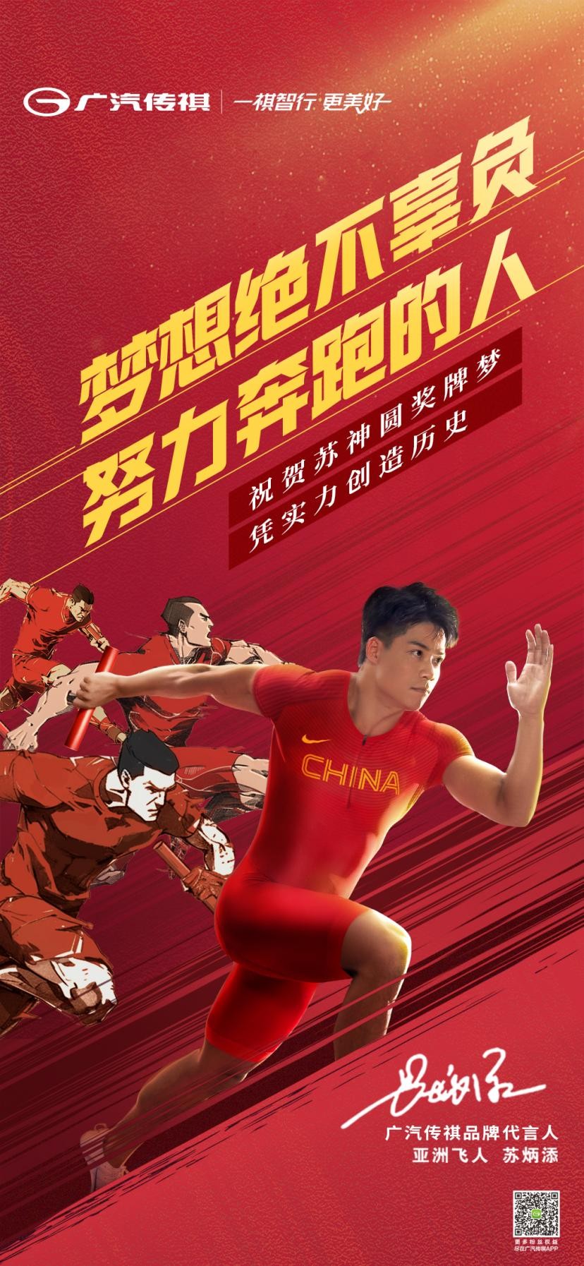 時光不負(fù)少年志,在這個榮譽(yù)時刻,和蘇炳添一直有著良好合作的廣汽傳祺,第 一時間送上祝賀。 回顧蘇炳添與廣汽傳祺的合作,不僅僅是一次代言,更是運(yùn)動明星與中國汽車品牌共同成長的榮譽(yù)之路。