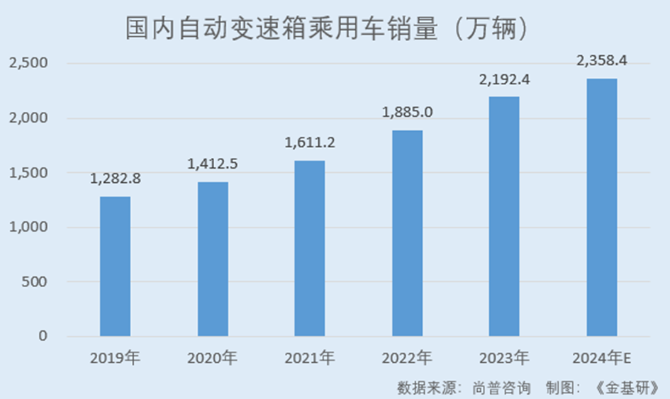 據(jù)尚普咨詢數(shù)據(jù),2019-2023年,國內(nèi)自動(dòng)變速箱乘用車銷量分別為1,282.8萬輛、1,412.5萬輛、1,611.2萬輛、1,885.0萬輛、2,192.4萬輛;國內(nèi)乘用車市場(chǎng)自動(dòng)變速箱搭載率分別為62%、70%、75%、80%、85%。尚普咨詢預(yù)計(jì)2024年國內(nèi)自動(dòng)變速箱乘用車銷量將達(dá)2,358.4萬輛,乘用車市場(chǎng)自動(dòng)變速箱搭載率達(dá)88%。