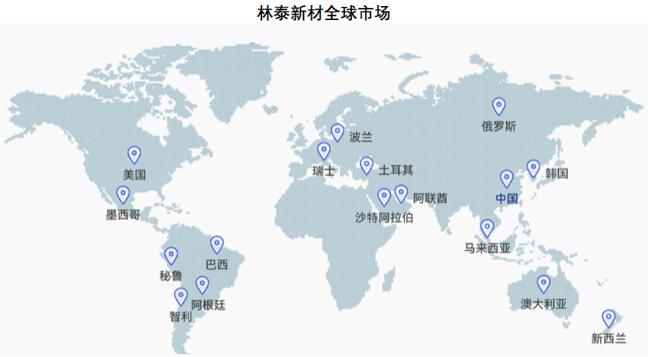 近年來,林泰新材響應(yīng)國家“一帶一路”倡議,加了對(duì)俄羅斯及中亞、拉丁美洲、中東等“一帶一路”地區(qū)的市場(chǎng)開拓力度。在原有境外老客戶銷售額增長的同時(shí),林泰新材亦持續(xù)開拓新客戶,其外銷收入逐年增長。