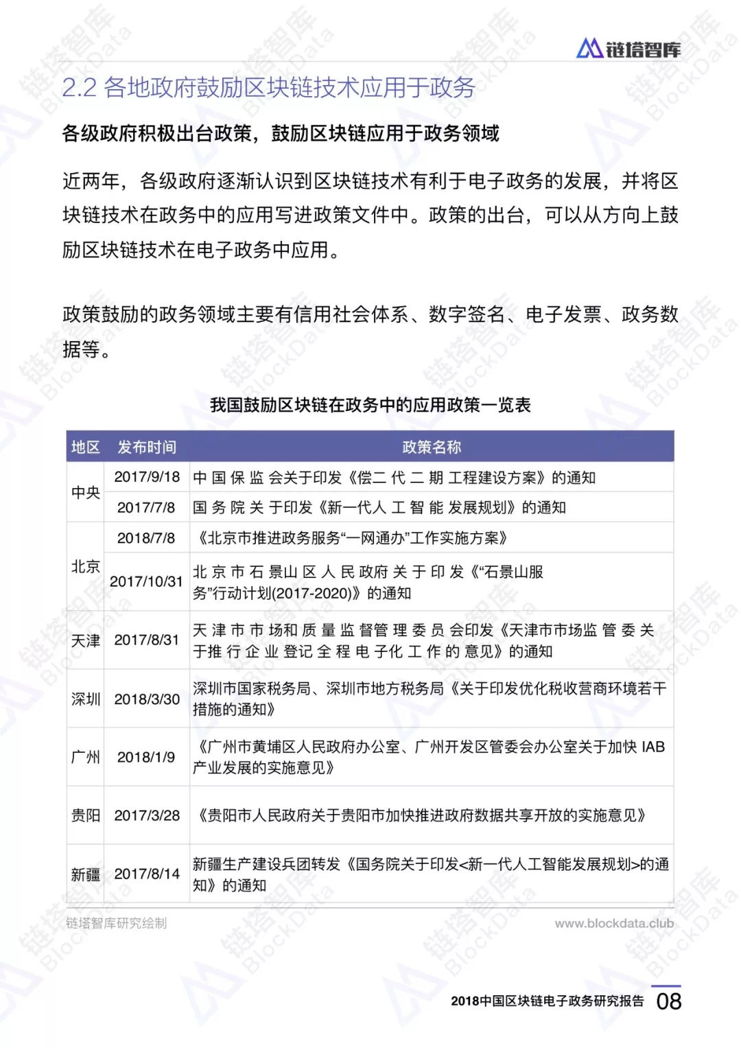 區(qū)塊鏈可為電子政務提供新的解決方案。我國各級政府紛紛出臺政策鼓勵將區(qū)塊鏈技術應用于電子政務,我國區(qū)塊鏈電子政務應用取得一定的進展。