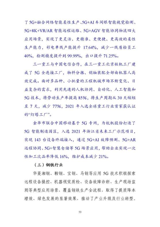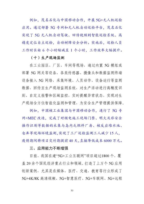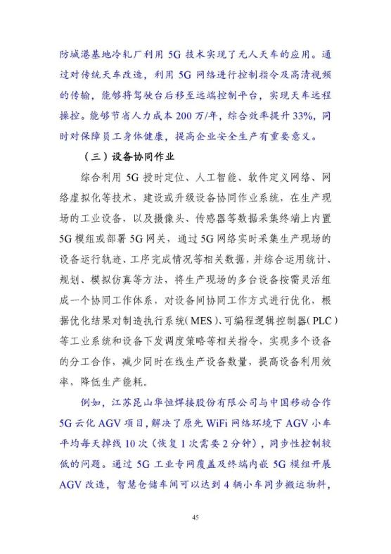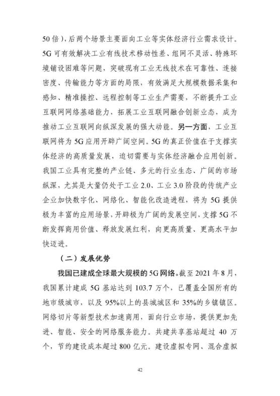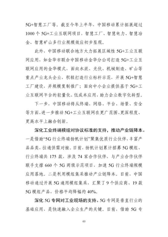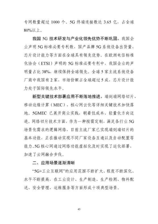 從外到內,5G賦能構筑全球領先優(yōu)勢。依托我國全球最大規(guī)模的5G網(wǎng)絡,充分發(fā)揮基礎電信企業(yè)、工業(yè)企業(yè)、設備企業(yè)、軟件企業(yè)的協(xié)同優(yōu)勢,構建了人、機、物、系統(tǒng)的全面連接,全國5G﹢工業(yè)互聯(lián)網(wǎng)在建項目已經(jīng)超過1800個,率先在電子制造、裝備制造、鋼鐵、采礦、電力五大行業(yè)開展應用示范。依托獨立組網(wǎng)、5G切片等新技術,推動5G由外網(wǎng)公網(wǎng)向工業(yè)網(wǎng)絡下沉。目前5G工業(yè)模組已經(jīng)下探至千元以下,千萬級工業(yè)模組已經(jīng)接近400元,低成本促使銷量正在快速增長,有效推動了應用范圍不斷延伸。同時,推動在銷售、物流等外部環(huán)節(jié)應用向研發(fā)、控制、檢測等生產(chǎn)制造內部環(huán)節(jié)延伸,形成了協(xié)同研發(fā)設計、柔性生產(chǎn)制造、無人智能巡檢等十大應用場景。