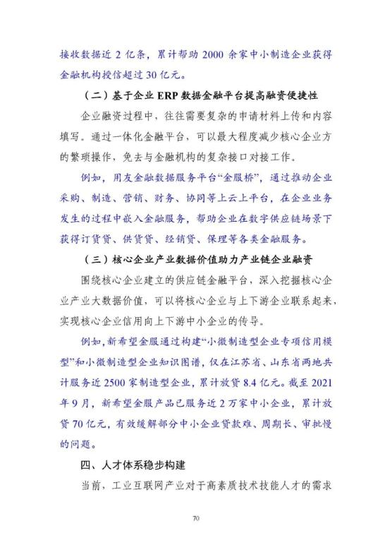 從小到大,產(chǎn)業(yè)新生態(tài)蓬勃發(fā)展。工業(yè)互聯(lián)網(wǎng)產(chǎn)業(yè)規(guī)模和參與的主體快速壯大,工業(yè)數(shù)字化裝備、工業(yè)自動化、工業(yè)網(wǎng)絡、平臺、安全、數(shù)據(jù)等軟件相關的核心企業(yè)規(guī)模年均增速超過20%,工業(yè)互聯(lián)網(wǎng)相關領域的技術研究、標準研制和產(chǎn)業(yè)化基本與國際同步,已經(jīng)發(fā)布國家標準60項,預計到2025年達到100項以上。人才體系扎實構建,全國43家高職院校備案開設工業(yè)互聯(lián)網(wǎng)專業(yè),工業(yè)互聯(lián)網(wǎng)人才實訓基地在全國快速布局。