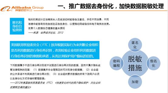 第一個是數(shù)據(jù)脫敏的問題。《網(wǎng)安法》第42條對數(shù)據(jù)脫敏、數(shù)據(jù)匿名化留有立法余地。這個立法授權(quán),實際上給未來的立法、商業(yè)實踐工作提供了廣闊空間。對于數(shù)據(jù)脫敏問題,行業(yè)和第三方機(jī)構(gòu)應(yīng)該加大協(xié)調(diào)統(tǒng)合力度,對涉及到個人相關(guān)的敏感數(shù)據(jù),在流轉(zhuǎn)流通過程當(dāng)中,要采取匿名化、去身份化等脫敏措施,確保整個數(shù)據(jù)使用過程處于安全狀態(tài),即使遭到濫用,對數(shù)據(jù)主體本人不會產(chǎn)生損害。