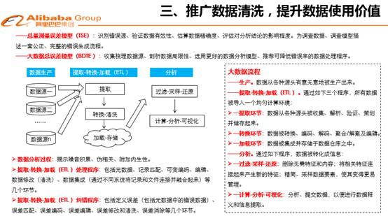 第三個,要進(jìn)行數(shù)據(jù)清洗,提供數(shù)據(jù)使用的價值。在大多應(yīng)用場景中,人們收集的數(shù)據(jù)是一些混雜的數(shù)據(jù),真數(shù)據(jù)、假數(shù)據(jù)、真實數(shù)據(jù)、錯誤數(shù)據(jù)混雜的情況下,這些數(shù)據(jù)在進(jìn)入正式流通渠道之前,不對它清洗,對數(shù)據(jù)中的重復(fù)性要進(jìn)行消重,數(shù)據(jù)錯誤信息不進(jìn)行糾錯,那么數(shù)據(jù)的價值沒法得到體現(xiàn)。對數(shù)據(jù)進(jìn)行清洗,加強(qiáng)數(shù)據(jù)凈化相關(guān)立法,推動相關(guān)第三方機(jī)構(gòu)建設(shè),使得一批行業(yè)從業(yè)人員能夠投身數(shù)據(jù)清洗工作,為數(shù)據(jù)提煉貢獻(xiàn)一份力量,讓行業(yè)數(shù)據(jù)真正展現(xiàn)出價值。