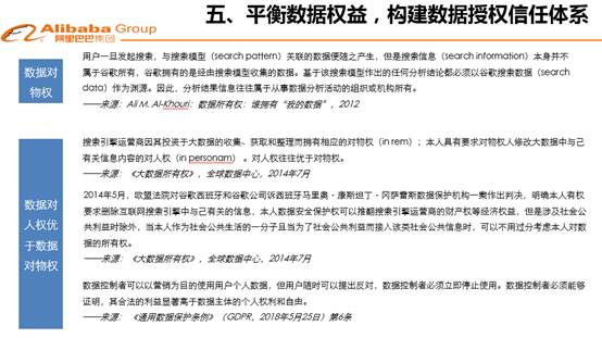 當(dāng)前人們還在熱議數(shù)據(jù)權(quán)屬問題。歐盟有一個判例,歐盟最高法院在判決西班牙岡薩雷斯數(shù)據(jù)保護(hù)機(jī)構(gòu)訴谷歌數(shù)據(jù)隱私侵權(quán)案件中,認(rèn)定一個數(shù)據(jù)有兩個權(quán)益,也就是說一個數(shù)據(jù)元素、一個數(shù)據(jù)集具有兩個權(quán)益,一個權(quán)益是對人權(quán),另外一個是對世權(quán)或者叫對物權(quán),對人權(quán)包括數(shù)據(jù)本人、數(shù)據(jù)主體合理的權(quán)益;對物權(quán)是指一個機(jī)構(gòu)、公司、企業(yè)以提供服務(wù)為目的,對搜集的數(shù)據(jù)進(jìn)行加工和處理,因投入成本而產(chǎn)生的權(quán)益。同樣一個數(shù)據(jù),具有這兩種權(quán)益,這兩種權(quán)益誰大或者誰小,誰應(yīng)該服從誰,歐盟法官提出,當(dāng)發(fā)生沖突的時候,對人權(quán)優(yōu)于對物權(quán),例如本人可以對機(jī)構(gòu)提出刪除,也可以可攜,還可以更正等,對本人賦予很多優(yōu)于機(jī)構(gòu)的權(quán)利設(shè)計。這種機(jī)制對我們也有一些啟發(fā),設(shè)計我們數(shù)據(jù)權(quán)屬的時候,我們是不是也可以借鑒歐盟和美國現(xiàn)有的一些成熟做法。