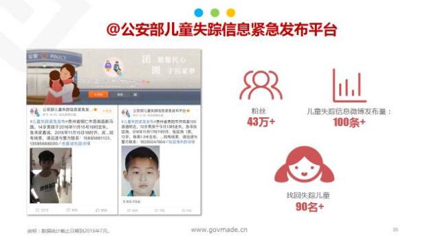 公安部兒童失蹤信息緊急發(fā)布平臺,現在有了43萬的粉絲量,其實這個平臺非常簡單,但是它抓住了現在整個社會的痛點,很多人孩子丟失了,雖然通過這個平臺才找到了90個兒童,但這90個兒童給大家更多的是一種希望,如果將來能把這個平臺真正的運用起來讓更多人關注,我們將來找到的人不只是這90個兒童。