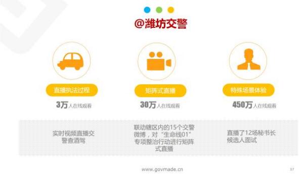 據聯合國電子政務調查報告,2012年僅25個國家門戶網站提供社交媒體網絡工具,到今年增至152個國家。引用2015年全國政務新媒體綜合影響力報告當中的數據,我們可以看到排第一的是國務院辦公廳,其實我個人感覺國辦的網站確實不錯,究其一點我覺得核心就是“用心”,當然他們的運維團隊比其他地方投入要大一些,但他們確實是非常用心的,有時候晚上12點或者凌晨2點都還在工作。