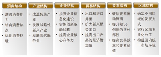中國(guó)經(jīng)濟(jì)轉(zhuǎn)型升級(jí)的關(guān)鍵是經(jīng)濟(jì)結(jié)構(gòu)的調(diào)整。經(jīng)濟(jì)結(jié)構(gòu)是一個(gè)籠統(tǒng)的概念,從宏觀看包括需求結(jié)構(gòu)、所有制結(jié)構(gòu)、貿(mào)易結(jié)構(gòu)、分配結(jié)構(gòu)、產(chǎn)業(yè)結(jié)構(gòu)、區(qū)域結(jié)構(gòu)、市場(chǎng)結(jié)構(gòu)等,從微觀看包括企業(yè)結(jié)構(gòu)、產(chǎn)品結(jié)構(gòu)、要素結(jié)構(gòu)、技術(shù)結(jié)構(gòu)等?,F(xiàn)階段,我國(guó)經(jīng)濟(jì)轉(zhuǎn)型升級(jí),應(yīng)重點(diǎn)關(guān)注以下六大結(jié)構(gòu)調(diào)整。