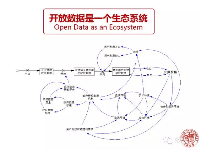 總體來(lái)說(shuō),開(kāi)放數(shù)據(jù)到產(chǎn)生價(jià)值是一個(gè)非常復(fù)雜的動(dòng)態(tài)的過(guò)程,涉及到各種利益相關(guān)方,有各種因果關(guān)系和利益關(guān)系,要使整個(gè)循環(huán)成為一個(gè)正循環(huán),而不是成為一個(gè)堵塞的循環(huán),就要讓這件事產(chǎn)生效果,讓政府更愿意開(kāi)放。產(chǎn)生更好的效果了,也就更愿意開(kāi)放,開(kāi)發(fā)者也會(huì)更積極得來(lái)利用數(shù)據(jù)。