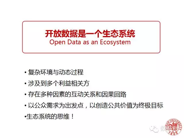 政府要有一個(gè)生態(tài)系統(tǒng)的思維。開(kāi)放數(shù)據(jù)不是甲乙方外包關(guān)系、購(gòu)買(mǎi)服務(wù)的關(guān)系,政府要做的工作是培育圍繞開(kāi)放數(shù)據(jù)的生態(tài)系統(tǒng)。