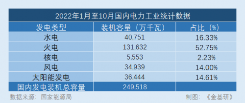 從發(fā)電的角度出發(fā),郭曉林關(guān)注到,因?yàn)橘Y源稟賦,國內(nèi)煤電占比較高。目前,國內(nèi)火電的發(fā)電裝機(jī)容量大概為250,000萬千瓦,而截至今年10月份,風(fēng)電發(fā)電裝機(jī)量和光伏發(fā)電裝機(jī)量分別是34,939萬千瓦和36,444萬千瓦,占比都在14%左右。為滿足碳達(dá)峰碳中和的目標(biāo),預(yù)計到2030年時,可再生能源的裝機(jī)量要達(dá)到70%以上。