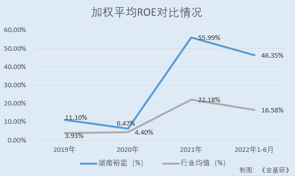 經(jīng)金基研計(jì)算,2019-2021年及2022年1-6月,上述四家湖南裕能同行業(yè)可比公司的加權(quán)平均ROE均值分別為3.93%、4.40%、22.18%、16.58%。