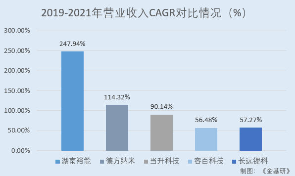 2019-2021年,湖南裕能同行業(yè)可比公司深圳市德方納米科技股份有限公司(以下簡(jiǎn)稱“德方納米”)的營(yíng)業(yè)收入CAGR為114.32%;北京當(dāng)升材料科技股份有限公司(以下簡(jiǎn)稱“當(dāng)升科技”)的營(yíng)業(yè)收入CAGR為90.14%;寧波容百新能源科技股份有限公司(以下簡(jiǎn)稱“容百科技”)的營(yíng)業(yè)收入CAGR為56.48%;湖南長(zhǎng)遠(yuǎn)鋰科股份有限公司(以下簡(jiǎn)稱“長(zhǎng)遠(yuǎn)鋰科”)的營(yíng)業(yè)收入CAGR為57.27%。