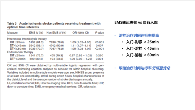 緊急醫(yī)療服務(wù)(EMS)的激活被推薦用于急性缺血性卒中(AIS)的及時再灌注治療。但EMS的利用率和到達(dá)醫(yī)院的時間間隔與再灌注治療前一系列必要程序之間的關(guān)系很少被研究。