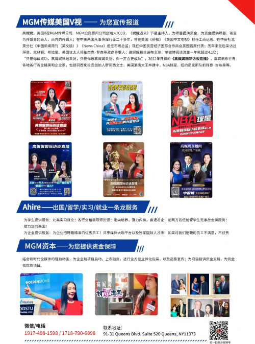 后來到了美國,她創(chuàng)辦MGM傳媒美國V視、MGM投資顧問公司,一干就是20年。
