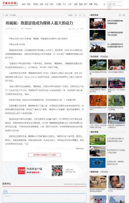 回望自己的媒體生涯,高娓娓認(rèn)為“熱愛”是最 大的動力?!白雒襟w行業(yè)非常辛苦,要努力、要用心,但首先是要熱愛。你做出來的成績、你采訪過的人、你的觀眾對你的反饋意見,都會讓你更有動力往前走?!?完)