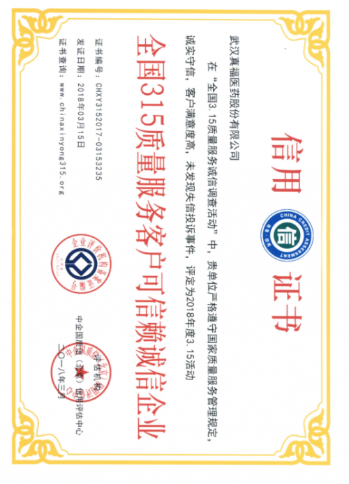 在全國3.15質(zhì)量服務(wù)誠信調(diào)查活動"中,貴單位嚴格遵守國家質(zhì)量服務(wù)管理規(guī)定,誠實守信,客戶滿意度高,未發(fā)現(xiàn)失信投訴事件,評定為2018年度3.15活動全國315質(zhì)量服務(wù)客戶可信賴誠信企業(yè)