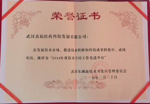 在發(fā)展技術(shù)市場,推進技術(shù)轉(zhuǎn)移和科技成果轉(zhuǎn)化中,成績突出,被評為“2014年度技術(shù)合同工作先進單位”