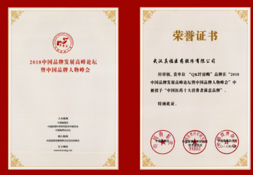 經(jīng)審核,貴單位 “QK纖溶酶”品牌在“2018 中國品牌發(fā)展高峰論壇暨中國品牌人物峰會”中被授予“中國醫(yī)藥十大消費者滿意品牌”。