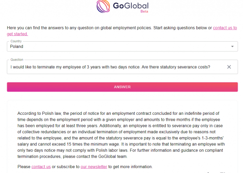 ChatGoGlobal 已經(jīng)正式推出,企業(yè)可以立即使用這款強(qiáng)大且高效的工具,快速訪問(wèn) GoGlobal 的國(guó)際人力資源規(guī)章信息。GoGlobal 一直致力于為企業(yè)提供創(chuàng)新解決方案,幫助其有效管理全球勞動(dòng)力,使國(guó)際人力資源運(yùn)營(yíng)更加便捷和高效。
