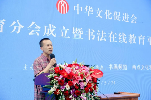 書法教育分會副會長兼秘書長蔡永清先生發(fā)言并介紹了分會推出的首個在線教育平臺,該平臺是文促會整合包括墨貢科技和兩點文化在內的社會資本和優(yōu)質書法教育資源,利用互聯(lián)網優(yōu)勢夯實基礎,傳承經典,以老帶新、以專育新、開拓創(chuàng)新的思路去實現(xiàn)書法實踐和書法藝術雙重成效,培養(yǎng)我們的下一代想寫字、能寫字、寫好字的習慣。該平臺也將會充分利用科技手段,以教、學、練、考、評、展為書法教育標準,讓書法藝術之花在全國遍地開花,讓傳統(tǒng)文化促進國際交流。
