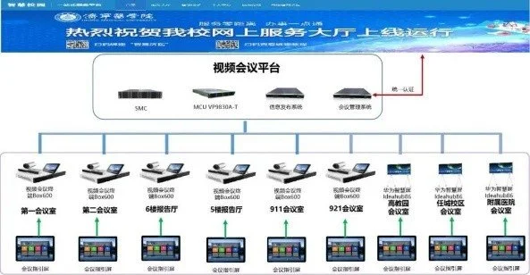 針對濟(jì)寧醫(yī)學(xué)院現(xiàn)有會議室的基本情況,華為智能協(xié)作聯(lián)合華為合作伙伴南京南方電訊有限公司睿景統(tǒng)一協(xié)作管理平臺,為濟(jì)寧醫(yī)學(xué)院打造了易管易控、超清智能的遠(yuǎn)程協(xié)作溝通智慧平臺。會議室視訊設(shè)備采用華為分體式終端BOX600和企業(yè)智慧屏IdeaHub,部分會議室安裝LED大屏、建設(shè)會議信息發(fā)布及指引系統(tǒng)、建設(shè)全新的視頻會議服務(wù)端和終端及相關(guān)音視頻設(shè)備、建設(shè)并對接山東省教育廳視頻會議系統(tǒng)等。本次建設(shè)和升級內(nèi)容包括太白湖校區(qū)第 一會議室、第二會議室、圖文信息樓5樓報告廳、教學(xué)樓6樓報告廳,日照校區(qū)辦公樓0911會議室和0921會議室,任城校區(qū)會議室,高教園會議室,附屬醫(yī)院會議室,共計9間會議室及報告廳。