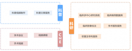 臨床醫(yī)生學(xué)術(shù)服務(wù):CME、科普、科研。