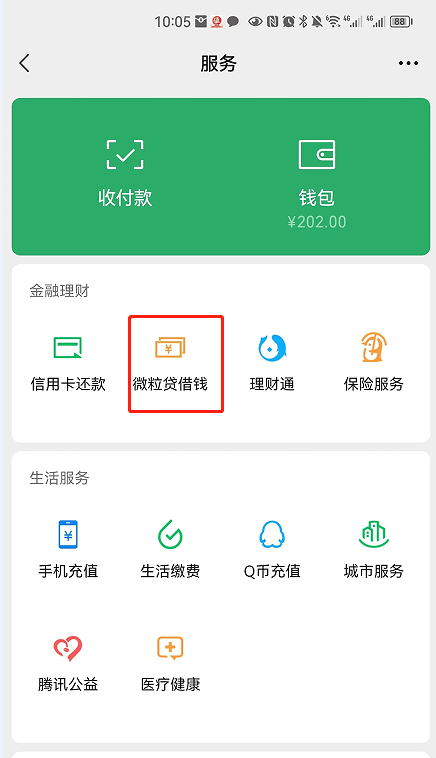 我是在微信【服務(wù)】找到“微粒貸借錢”入口的,(在手機(jī)QQ【我的QQ錢包】中